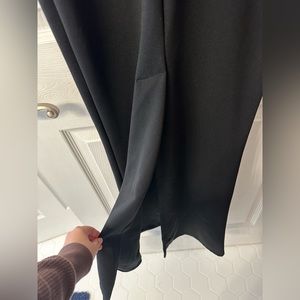 Beautiful peplum-detail, sweetheart neckline formal, floor length black dress, perfect for weddings or other formal events. Also comes with capped sleeves and back slit. Size medium, worn only once. Fits more like a small.