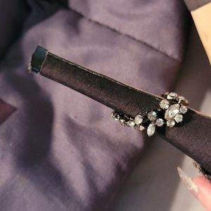 Add a touch of glamour to your ensemble with Badgley Mischka Royal Embellished High Heel Shoes in Black Satin adorned with Rhinestones. These exquisite pumps, sized for Women's 7.5, are the perfect choice for making a statement.