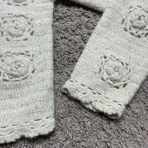 Vintage Angora Crochet Knit 3D Flower Pearl Crop Cardigan Sweater.