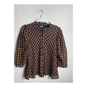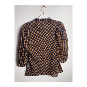 Eva Franco Anthropologie Textured Plaid Puff Sleeve Blouse Button up Shirt