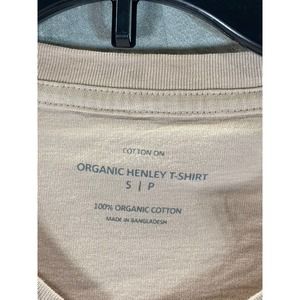 Cotton:On Men's Dusty Blossom Organic Henley Short Sleeve T-Shirt SZ S