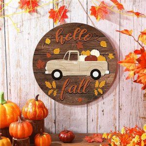 Hello Fall Wooden Sign Pumpkin Welcome Sign Truck Sign Hanging Carrying Pumpkin