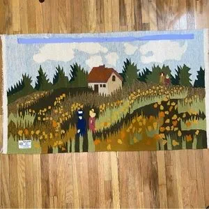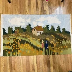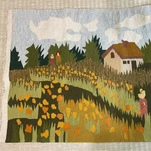 Limited Edition Handwoven 100% Woolen Tapestry Field With Flowers Weave Art Gallery La Mère Made in India
