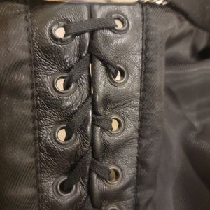 Leather and grommet detail provides an edgy yet classy lace up style.