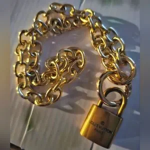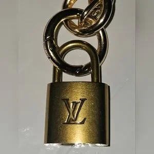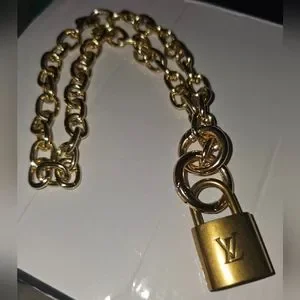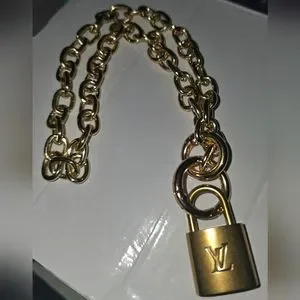 Louis Vuitton Authentic Lock on a matching 14k Gold Plated Chain Necklace (16.5 in). The chain necklace is NOT from LV. Just the lock and key and box.
