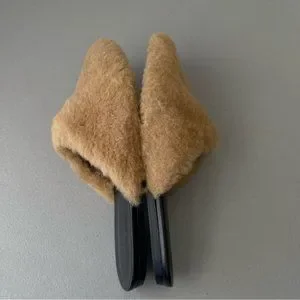 Jenni Kayne Shearling Pointed Toe Flat Mule in Natural EU38 US7.5-8