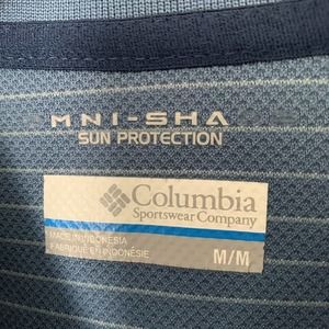 Columbia Sportswear Mens M Omni Shade Polo Shirt Blue Striped Sun Protection