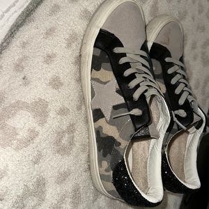 Only worn a few times. Dirt on front part of the shoe can probably be easily cleaned with suede cleaner!!