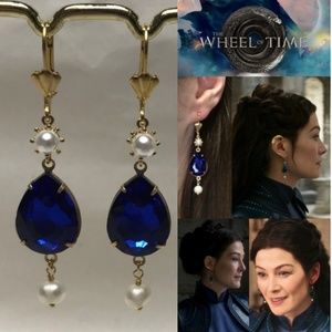 Love those Renaissance-style Sapphire and Pearl earrings Aes Sedai Moiraine Damodred wears on the Wheel of Time TV series? Get the look, with these gorgeous handmade replicas!