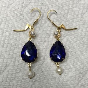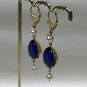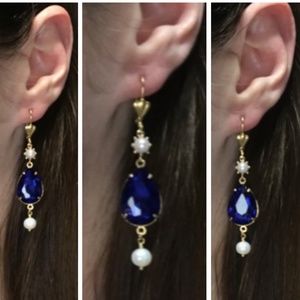 Moiraine’s Teardrop Sapphire & Pearl Earrings Wheel of Time Handmade Replicas