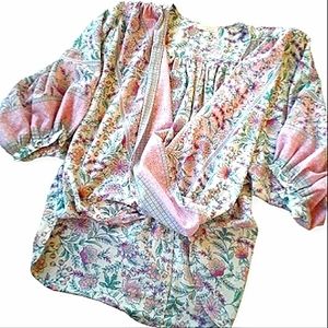 Love stitch blouse cream and pink with gold stitch mid poofy dolman sleeves M