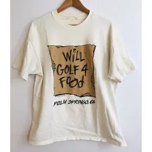 Vintage Will Golf For Food Palm Springs California Distressed XL 2XL T Shirt