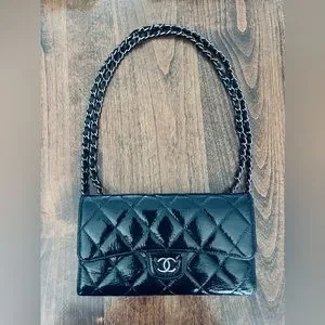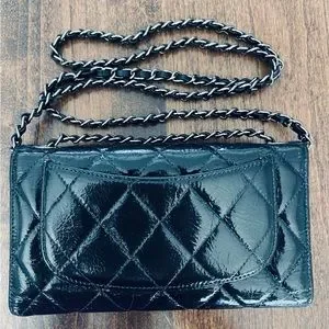 SOLD! Chanel Classic Quilted Patent Leather Wallet on chain, black