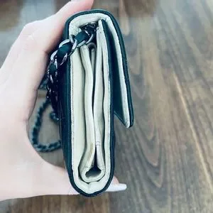 In good pre owned condition. Shows some signs of wear as a pre owned item. Please check all pictures for details. Overall it is in great condition. Can be worn as a shoulder bag or crossbody. Fits iPhone, will not fit iPhone Max.