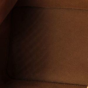 Condition: Very good. Creasing on exterior, darkening, wear, scuffs and watermarks on leather trims and strap. Wear and marks in interior, scratches and tarnish on hardware.
