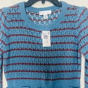Motherhood Maternity Striped Pointelle Maternity Sweater Provincial Blue Size Extra Small