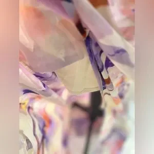 Excellent condition. Elastic waist. Long slit. Partially lined. 100% Polyester.