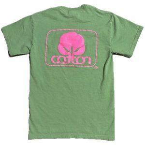 Vintage Cotton Logo Graphic Short Sleeve Tee Pink Green Size Small
