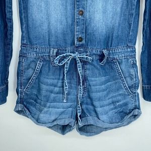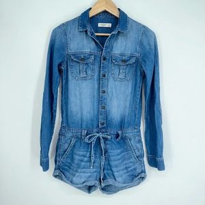 Abercrombie & Fitch Long Sleeve Denim Jean Shorts Romper in Medium Wash A&F