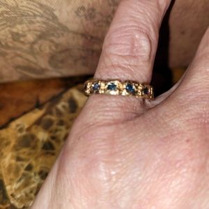 Tiffany and Co. Sapphire Eternity ring. Set in 14kt yellow gold. It's a gorgeous ring. Anyone would feel lucky to have such a prized piece of jewelry in their collection.
