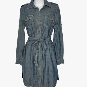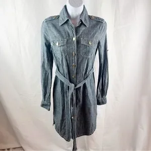 Tory Burch Blue Denim Belted Brigette Demi Shirt Dress Size 0