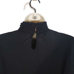 Adrianna Papell Size Small Black Smocked Neck & Sleeves Blouse
