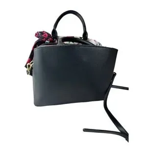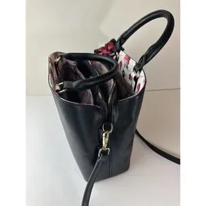 Betsey Johnson Gigi Triple Compartment Satchel W/ Scarf Black Purse Shoulder Bag