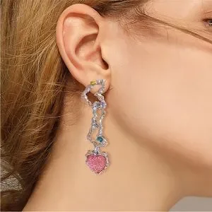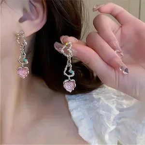 Diamond Inlaid Pleated Love Earrings Sweet Cool Cool And Cool Style Earrings 1 pair