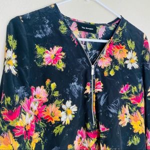FIREWORKS FLOWERS SILK TOP IN BLACK
