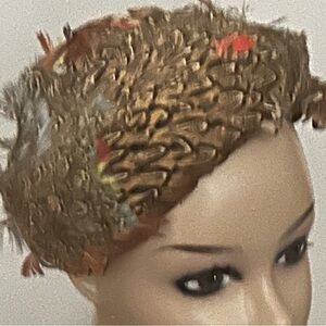 Vintage beautiful feather hat in excellent condition. Very fashionable! Autumn colors. 22-23” inside measurement.