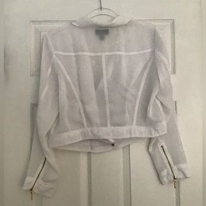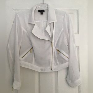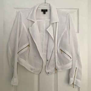 THALIA SODI sheer crop white jacket with beautiful gold zipper detailing.