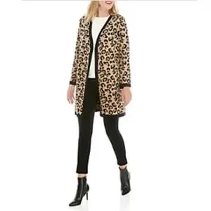 A fierce leopard print accented by a black trim keeps this cozy, chic duster cardigan from THE LIMITED at the top of your must-have list.