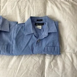Boys Crew Cut Size 10 long sleeve button up. Blue and white checked.
