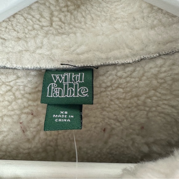 The Wild Fable Vegan Black Leather Biker Jacket with Off White Sherpa Lining is a stylish and cruelty-free option for those looking for a trendy outerwear piece. It features a classic biker jacket design with the added warmth and texture of the off-white sherpa lining. This combination offers both fashion and function.