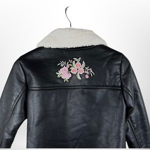 Wild Fable Vegan Black Leather Biker Jacket With Off White Sherpa Lining