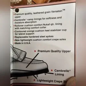 Elevate your golf game with these vintage The Soft Ones By Endicott Johnson golf shoes in size 8. The shoes feature a lightweight crepe outsole, cushioned insoles, and Versatan upper material. The Cambrelle lining keeps your feet dry and comfortable while you tackle the course.