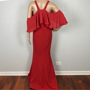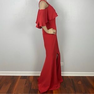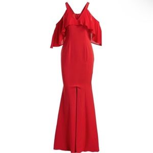 JAY X JAYGODFREY RED COLD-SHOULDER MAXI GOWN