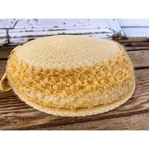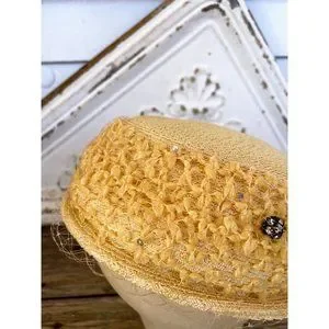 Here for your consideration is a lovely sweet yellow straw vintage pill box hat. It is made by Screen Vogue Originals. The circumference from the inside is about 20.5". This is clean and no tears in the netting. It is in great wearable vintage condition.
