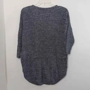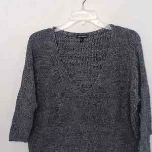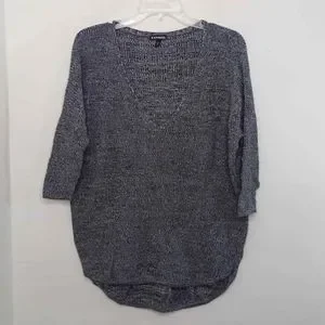 Express Women Sweater Top Small Petite Gray Relaxed Fit Knit V-Neck 3/4 Sleeves