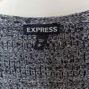 Express Sweater Top Women Small Gray Knit V-Neck 3/4 Sleeves Cotton