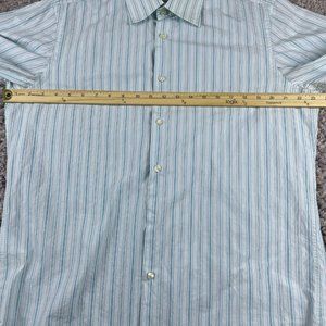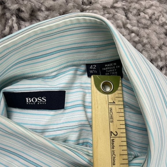 Hugo Boss Dress Shirt Men's Size 42 16.5 Blue Striped Button Up Long Sleeve