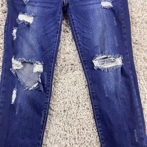 Kancan Cora Mid Rise Super Skinny Ripped Jeans Size 13/30 Dark Wash Step Hem
