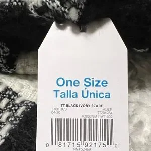NWT Time & Tru buffalo plaid scarf black ivory one size women’s.