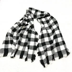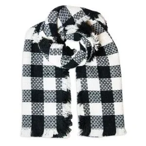 🆕 Buffalo plaid ivory white & black fringe scarf one size