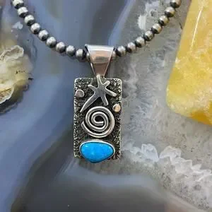 Alex Sanchez Native American Sterling Petroglyph Turquoise Dainty Pendant #7