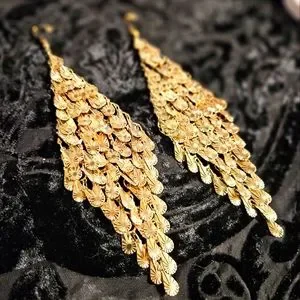 Beautiful 7" Gold Dangling Earrings
