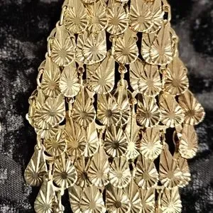 With these lightweight gorgeous 7" gold earrings, you will be ready for all the holiday parties and for the New Year. These earrings have more moving gold panels than you can count, which bounce every which way while you're walking or dancing the night away.