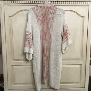 Easel Women’s Cream And Pink Long Flare Sleeve Cardigan Sweater Size M/L EUC