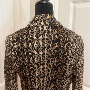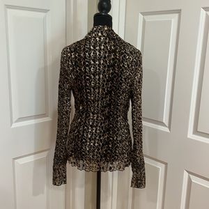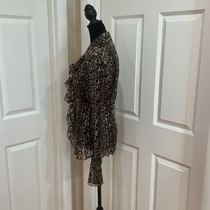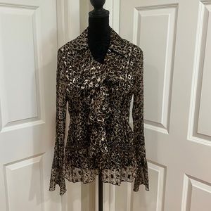 Woman’s, M, Mary L Couture, animal print blouse. Beaded trim and flare ruffled sleeves. 6 button front. 100% polyester. Dry clean only. Like new!