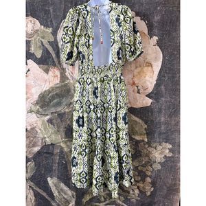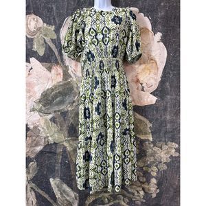 New Anthropolgie X THE ODELLS Smocked Puff-Sleeve Dress Size Large